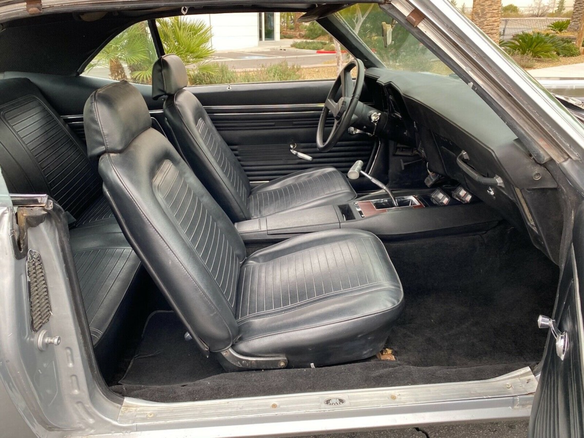 1969 Camaros look particularly good to me from this angle. With more of a “coke-bottle” shape than the earlier cars and a visually wider stance, they somehow look more powerful without the fastback of the second-generation cars. We’re told this car has no rust at all and the pictures, while not particularly detailed, appear to support that claim. The Cortez Silver paint looks great to me (and is the original color for the car) although the seller states it could use a new paint job at some point.