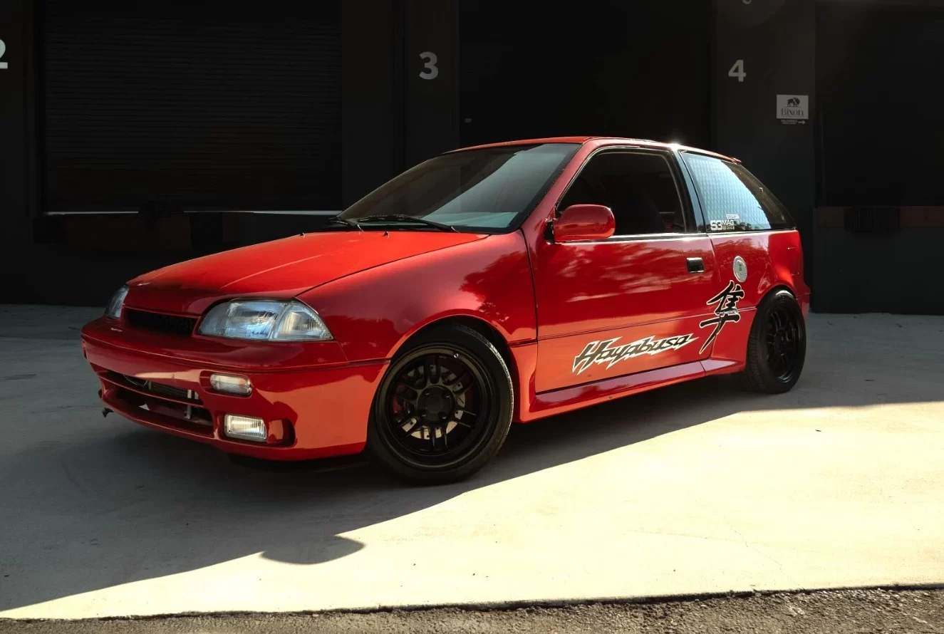 The Suzuki Swift was a very humble car when it arrived on our shores, and it clearly shares much with its corporate twin, the Geo Metro. Meant to be a fuel-sipping appendage of those with long commutes or a hypermiling obsession, the performance credentials of the model were basically nil. This changed, slightly, when the Suzuki Swift GTI entered the equation, which gave the hot hatch scene in the early 90s some serious competition. Recaro seats, more power, and firmer suspension transformed the Swift GTI into an instant autocross threat seemingly overnight. But those cars are near impossible to find these days, and were certainly not what you’d call fast.