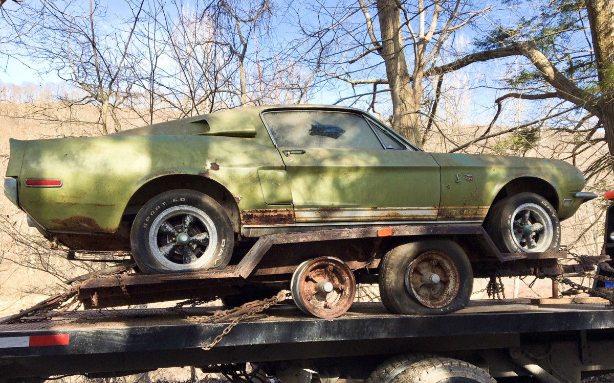 I’ll say, like finding a chunk of gold the size of a cinder block. While it’s quite a find, I’m appalled at the surroundings. Poor health or not, is no excuse to live like that, much less the most collectible car on the rock allowed to become this. It just shows, at one time, this was just someones beater Mustang they drove everyday to work in the slop. I wonder if they left it on the trailer for fear of it breaking in half. They were magnificent cars, and Mr. Shelby is spinning in his grave.