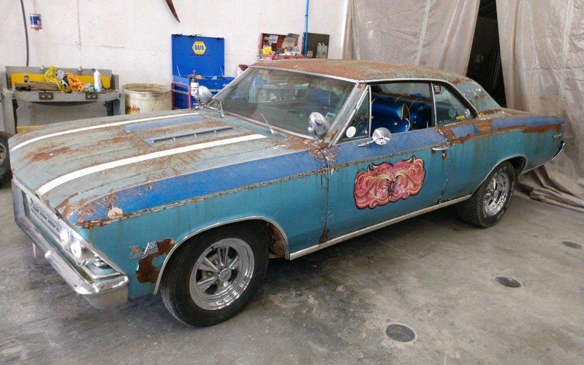 Sometime after seeing 20 or perhaps 60 (or more) perfectly restored classic Chevelles, it may occur to an automobile enthusiast that, perhaps, not every SS needs a one-way ticket to perfection. This 1966 Chevrolet Chevelle SS 396 in Council Bluffs, Iowa captures a slice of automotive history and tells a story no factory specimen ever could. If the Tri-Power 427 doesn’t get your attention, check out the custom graphics, twin spotlights, and the metallic blue vinyl upholstery. The listing here on eBay comes with a $16,500 Buy It Now option.