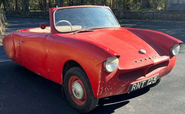 This car is sleek, isn’t it? For 1958, it looks much more modern to me than a late 1950s car should. They were only made for a couple of years, unfortunately, and are very rare to see today, hence the asking price. A gent named David Gottlieb designed the Coronet after having tried his hand at another three-wheeler called the Powerdrive. Instead of aluminum bodywork, the new Coronet was fiberglass, somewhat similar to Mr. Gottlieb’s first effort, the Allard Clipper. Just three Clippers are known to survive, out of only around 22 made. Their slogan? “Take the nipper in a Clipper,” relating to a small seat outside on the rear deck, wow.