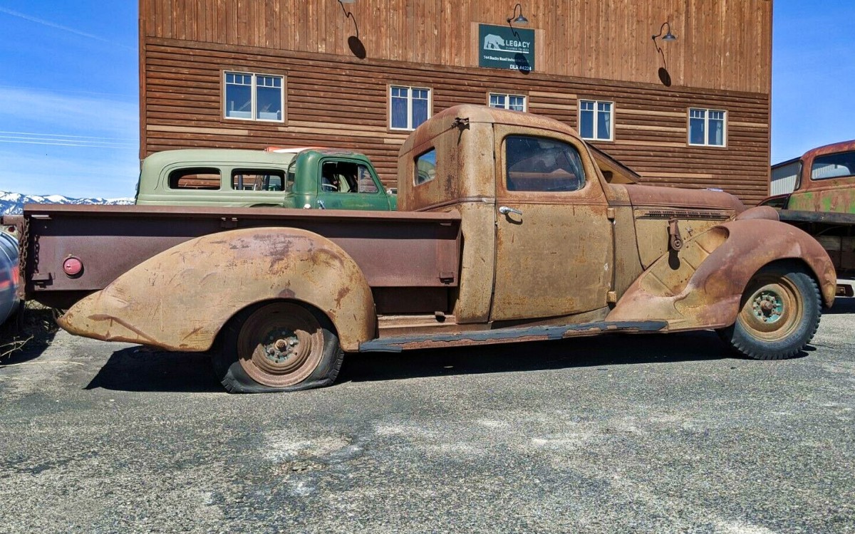 How classy is a pick-up with a sidemount spare? Very, very in my opinion but I am also quite fond of ham sandwiches and cold beer. Hard to know the “$$$” value but if you like 1937 Terraplanes (like I do) consider these two also on e-bay at this time.