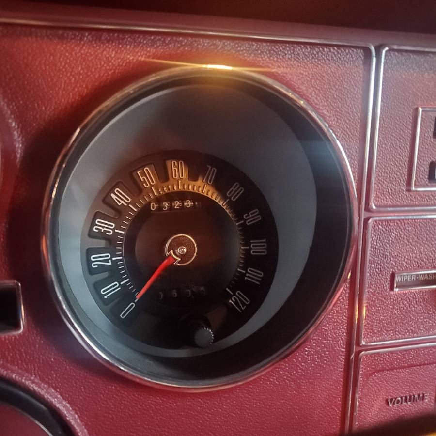 A 3,200-mile odometer reading is no assurance of anything. Bad storage will do more damage than hundreds of thousands of road miles. But this car appears to have been very well-kept. Even the period half-vinyl roof survived. The pristine interior conjures up Ricardo Montalban, though that’s not Corinthian leather in there. Dig the fake wire wheels!