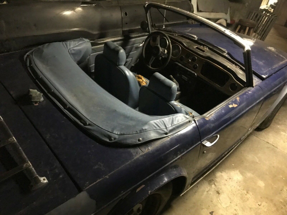 Dan has restored another TR6 and loves them, but the old, familiar story is that he “has way too many cars.” He says this blue beauty is “definitely restorable,” and isn’t significantly rusty. It will need a lot, though.