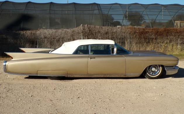 When one thinks of Cadillac’s Eldorado, often thoughts of a big, front-wheel-drive coupe or convertible come to mind, but that wasn’t always the case. Starting in 1953, the Eldorado name meant an even more exalted Cadillac. Originally available as just a convertible, a hardtop later followed. By 1960, Eldorados could also be had as a four-door hardtop, referred to as a Brougham, to accompany the Seville, a two-door hardtop, and of course, the Biarritz, a convertible such as our subject. The Eldorado was in short supply across all three body styles in ’60, with just 2,400, in total, making the scene.