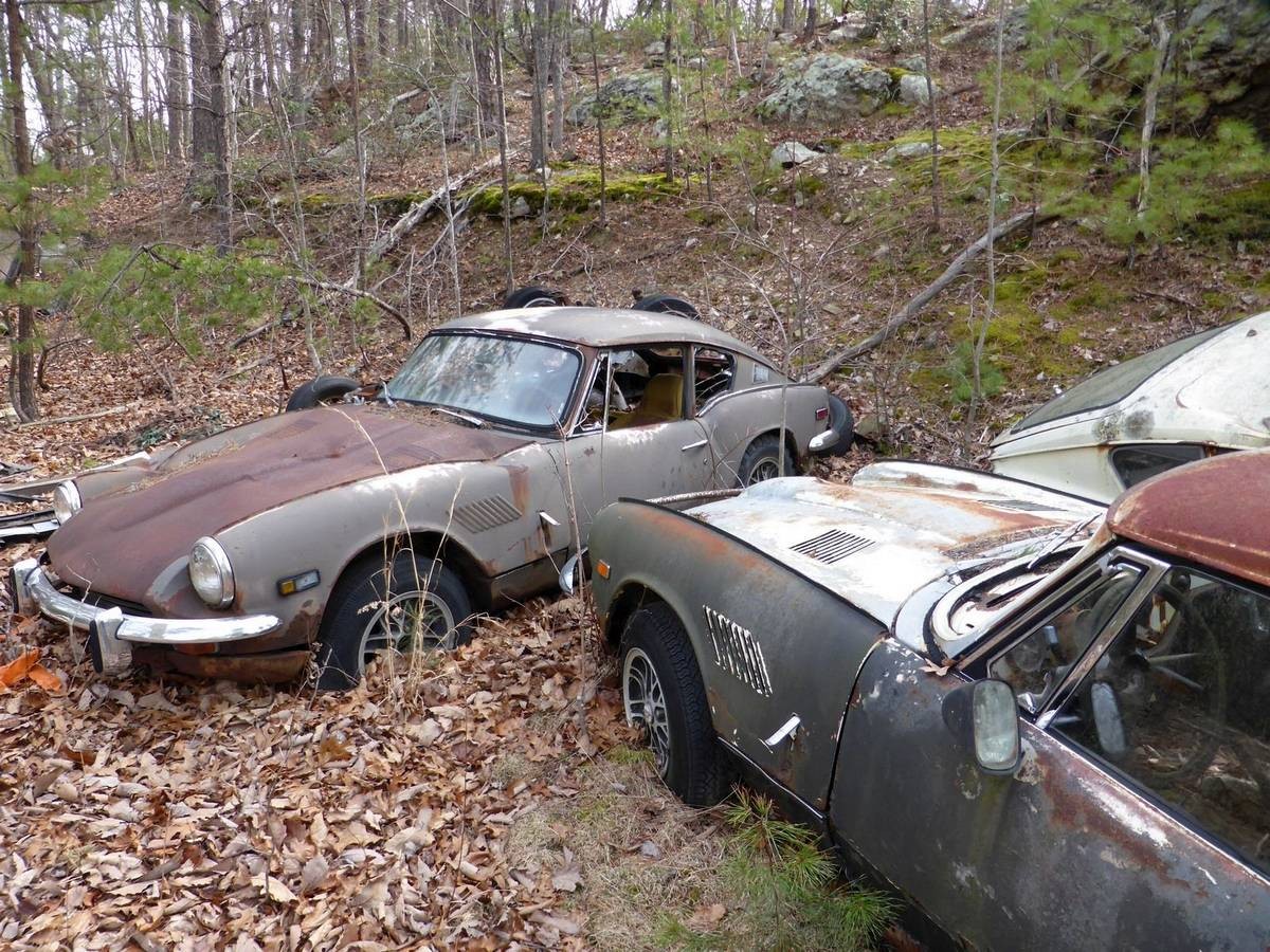 If there were closer, I would haul them to my yard. Easily worth $500 in parts and they are small enough to fit on one trailer. I tried to find them on Google Maps Satellite images, there are all kinds of cars growing in those woods by the Roanoke River, but I never found the Triumph patch. The GT6 is a blast to drive if you ever get the chance.
