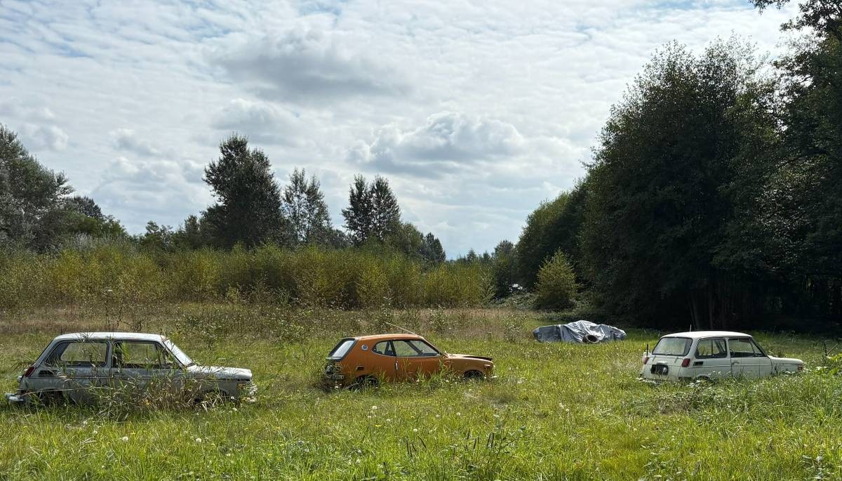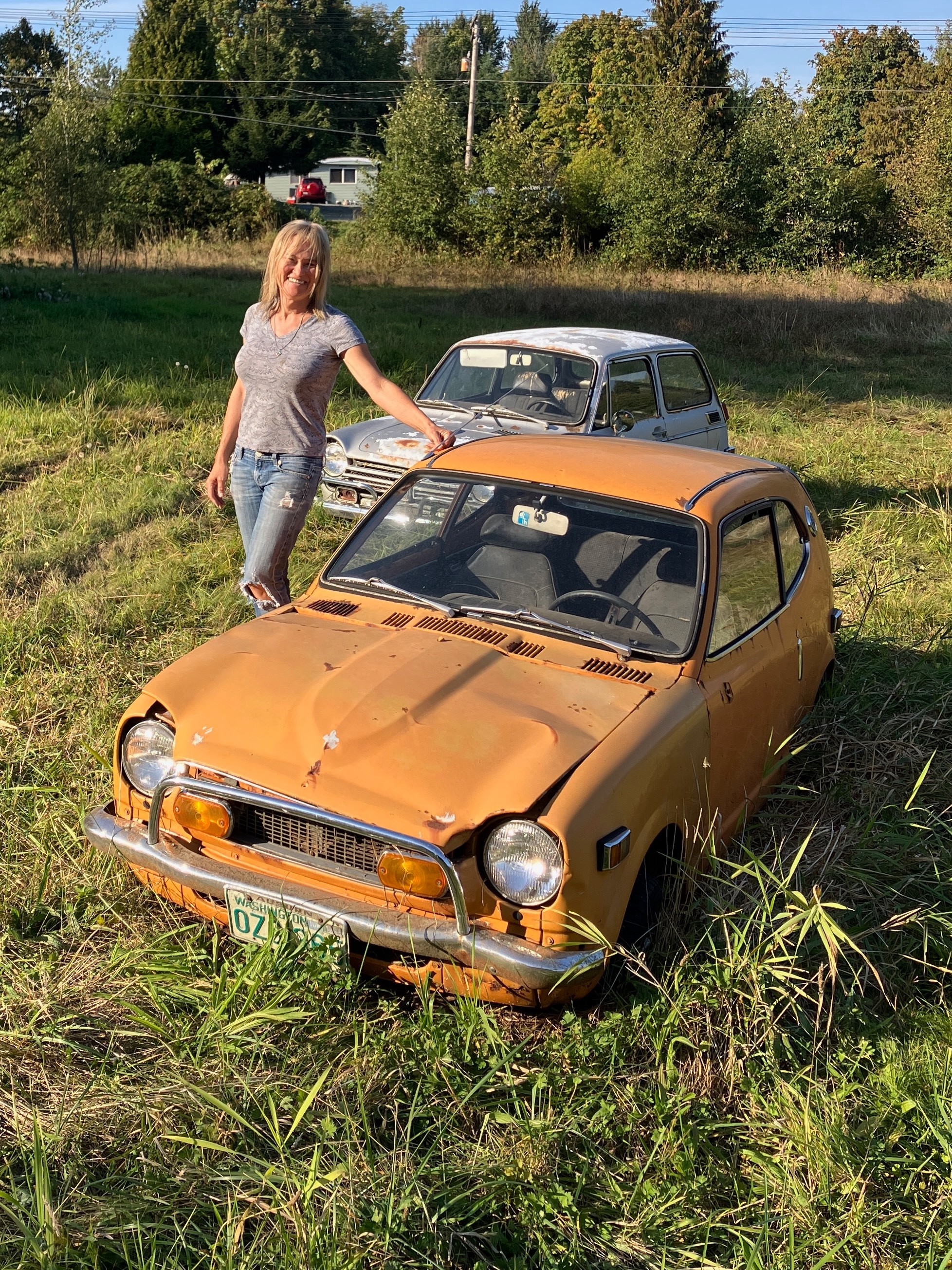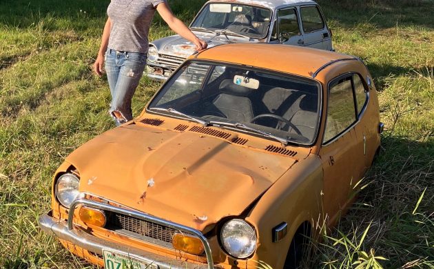 I went there today with my flatbed trailer – two are still available and I could have had them. After taking a closer look I decided to skip both remaining cars (I have too many projects) but was able to air up most of the tires, put both Hondas in neutral, dragged them out of the field with my Suburban, moved them into an area with better access. I was surprised to find floors and rockers intact – dirt didn’t reach that level. Rust damage on the Z600 appears to be from winter driving (front tires are studded snows). Interiors are trashed from years outdoors. No title on either car – there are ways to obtain a valid title but the process involves a 3 year wait in Washington State. If anyone here is seriously interested I took photos and can tell you what I found. My email is kffowles and I use Gmail.