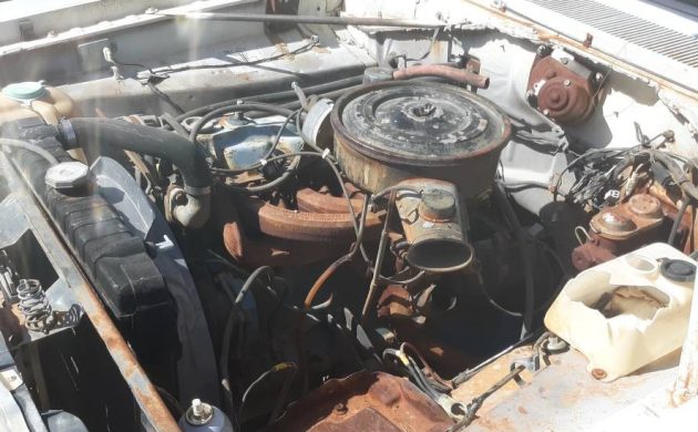 While hardly zoomy, the 95 net HP, 225 CI, slant-six in-line engine is one of those kinds of modest powerplants that just keeps doing its thing, mile after mile and year after year. In this case, that mileage count is at the 180K mark and likely still has some more to go. Absent the battery, the engine compartment shows as complete,