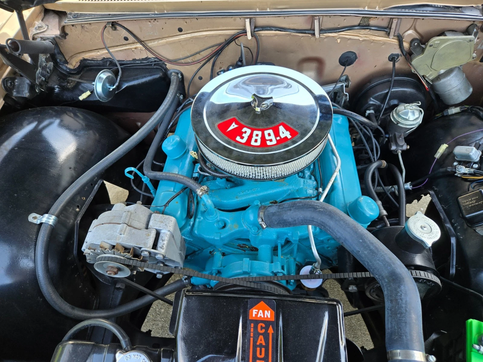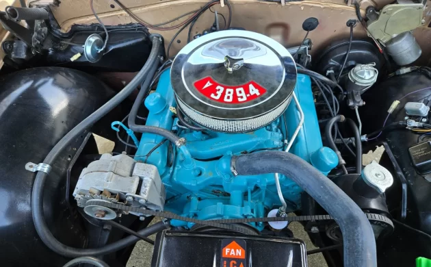 The manual-transmission-equipped Bonnevilles had an interesting engine, a low-compression (8.6:1) 389 four-barrel, which produced 235 horsepower and 407 lb.-ft. of torque. Pontiac almost begged Bonneville buyers to upgrade to the Hydra-Matic, as the standard engine with that transmission was the high-compression (10.25:1) 303-horsepower 389, which also had a hotter camshaft than the synchromesh engine. This car has power steering and power brakes, and the seller says that it’s in “excellent running condition.”