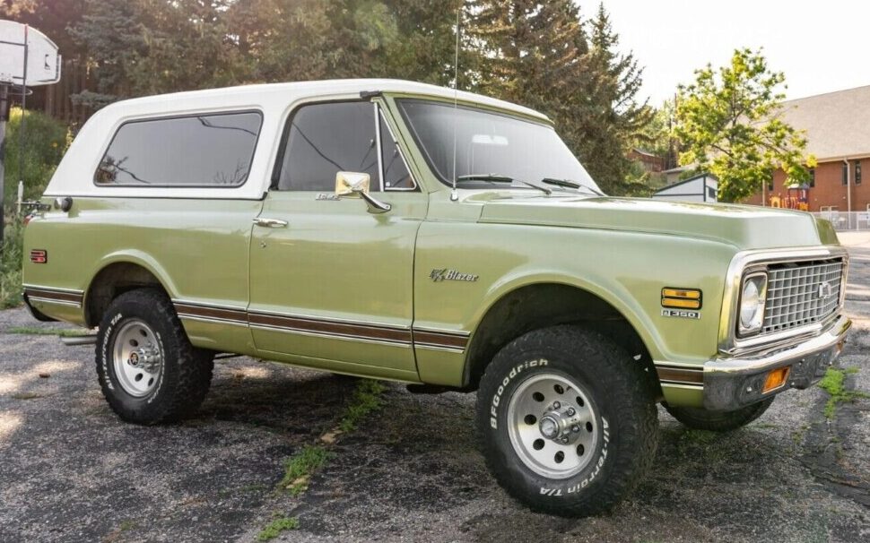 I like to write about Chevy Blazers for two reasons. First, nostalgia. We owned an 80’s model and it was such a stalwart runner – it never gave us a lick of trouble which was important because we had no money to fix it. Second, the prices of early Blazers are astonishing these days, and I’m fascinated by what collectors will pay for a large, square vehicle that used to be ubiquitous. The seller of this 1971 Chevy Blazer K5 here on eBay must be gratified that the bidding has reached $25,200, blasting past whatever reserve he imposed. The Blazer’s odometer reads 29,000 miles but after three owners – the first two of which were probably not thinking their commuter would turn collectible – I’m betting it’s rolled over. Still, the color is attractive and rare, and the condition is quite respectable, as we’ll see.