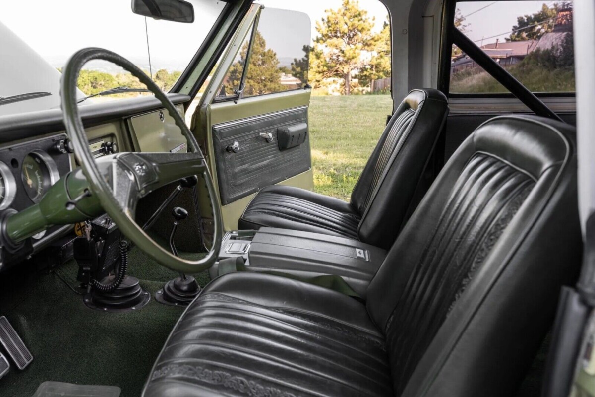 The Blazer was developed from a shortened Chevy K10 truck chassis, which made it considerably larger than its Jeep, Bronco, and Scout competitors. The larger size accrued to the benefit of the cabin. But Chevy had also installed car-like luxury features in its trucks, which it carried over to the Blazer. Air conditioning, comfort seating, carpeting, ergonomic instrument panels – all of these boosted sales. Competing makers scrambled to introduce their own truck-based SUVs, but the Blazer’s headstart was tough to beat. This truck has the top-of-the-line 350 cu. in. V8 installed. The transmission is a four-speed manual paired with the venerable NP205 transfer case. The carburetor is brand new.
