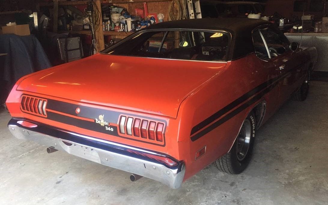 This is a nice demon. Clean and the rust is a issue,but common and not that tough to fix. I had a 71 Demon 340. It was yellow and black top. I dont remember the top having issues. It was a 4sp with the dual hood scoops. I wound up trading it for a international scout. The kid wrecked the demon in a week. I wound up buying the demon back for $100, parted it out and made good money. I still have pics of the car and think back. I could have fixed it easy.