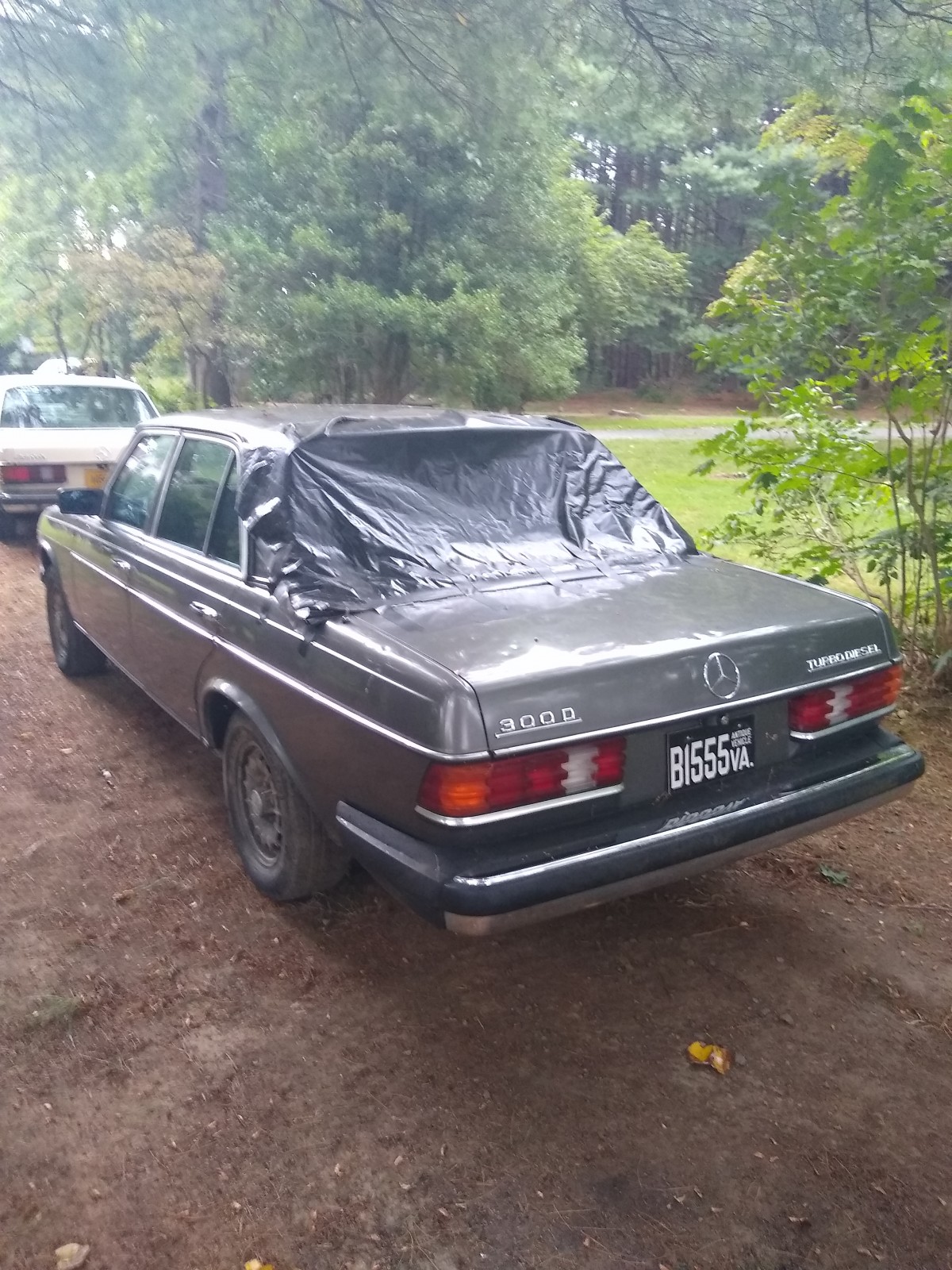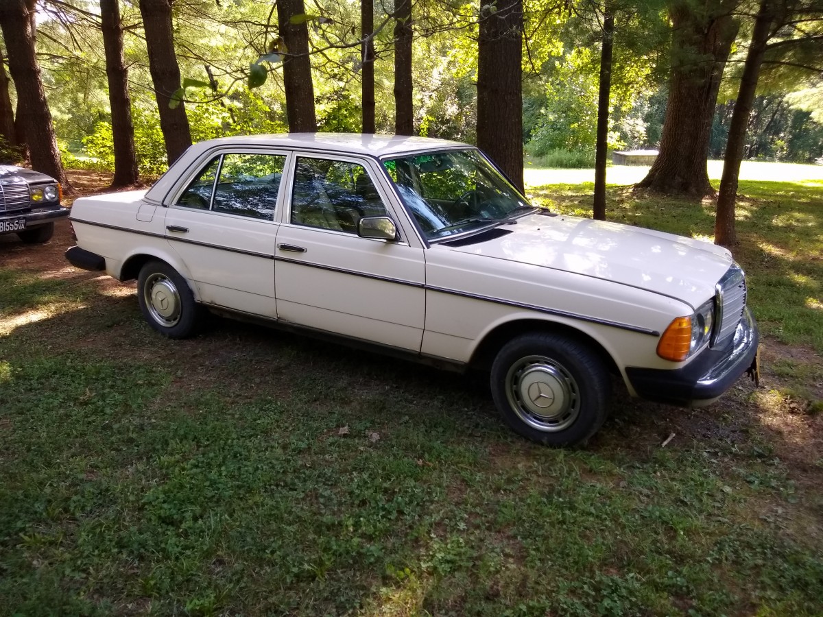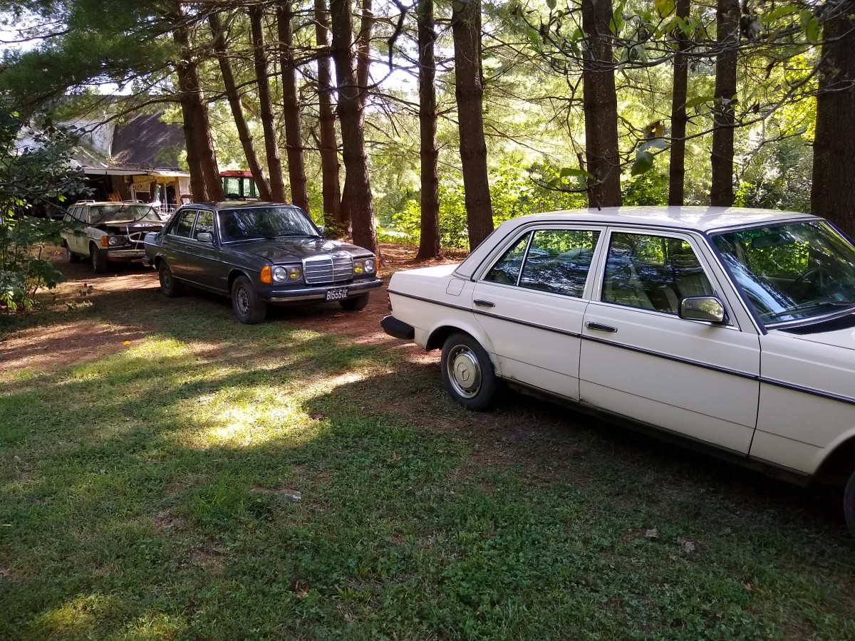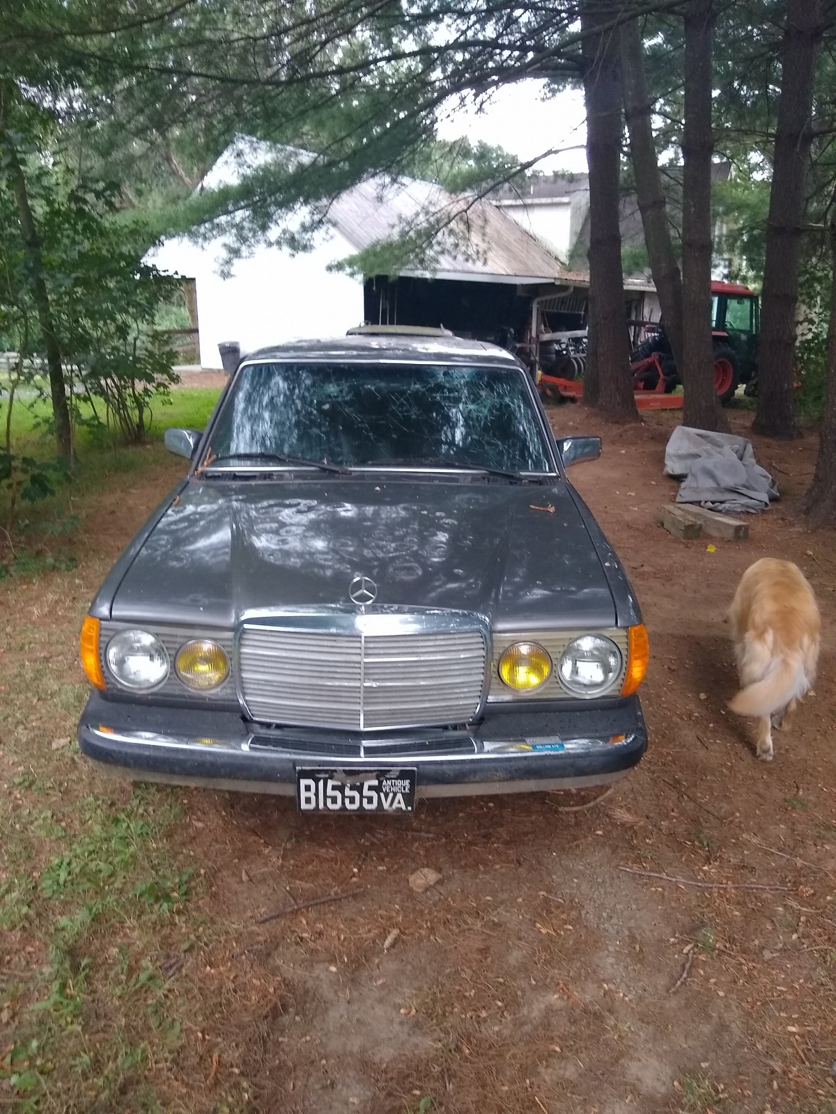 A rust-free 1984 300D turbo with 325,000 miles that was damaged by a hailstorm (windshield, rear window, and about a hundred good dents). Recent motor swap with a 120,000-mile wrecked car (it purrs). The transmission was replaced with new factory replacement at 200,000 miles.