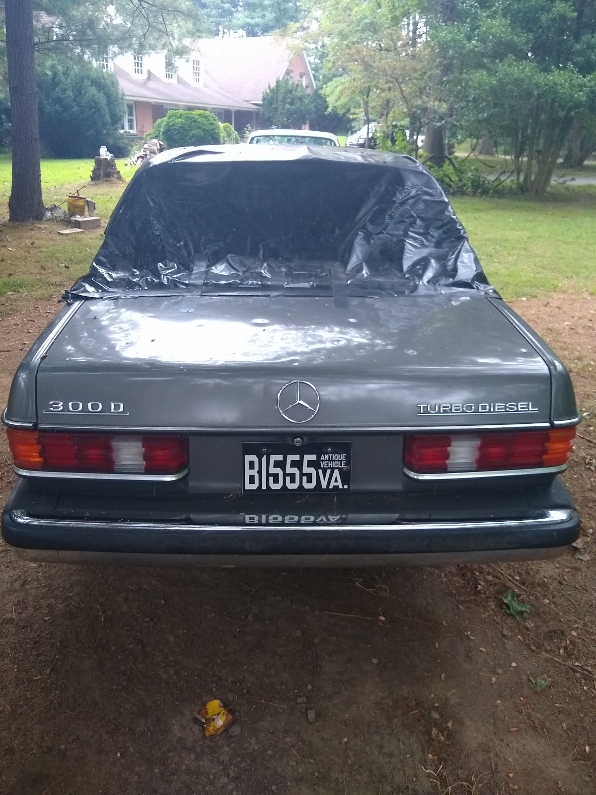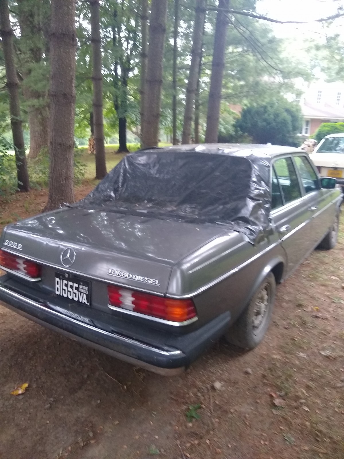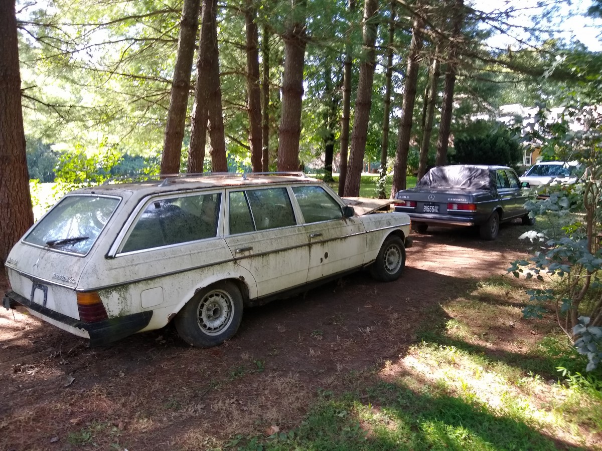 A rust-free 1984 300D turbo with 325,000 miles that was damaged by a hailstorm (windshield, rear window, and about a hundred good dents). Recent motor swap with a 120,000-mile wrecked car (it purrs). The transmission was replaced with new factory replacement at 200,000 miles.