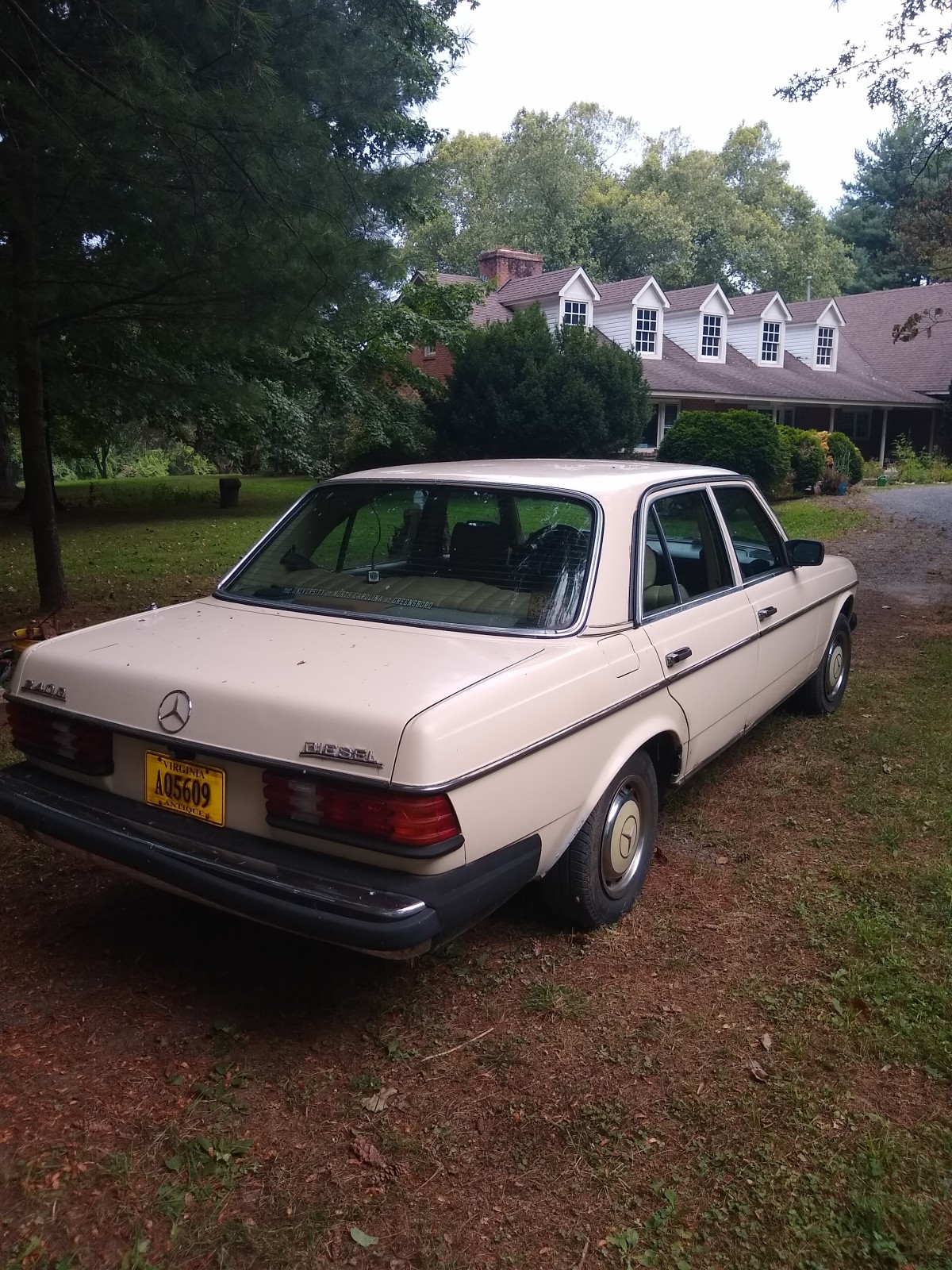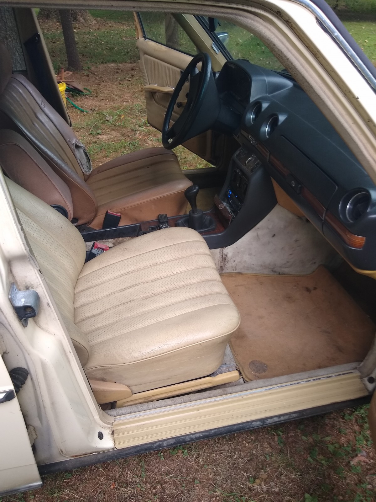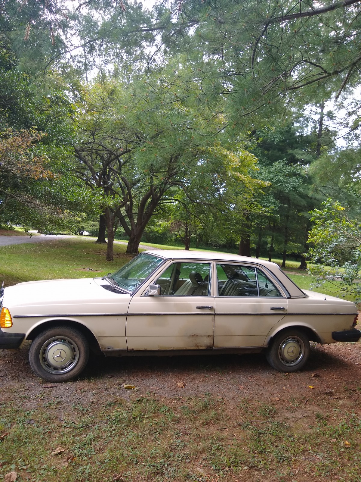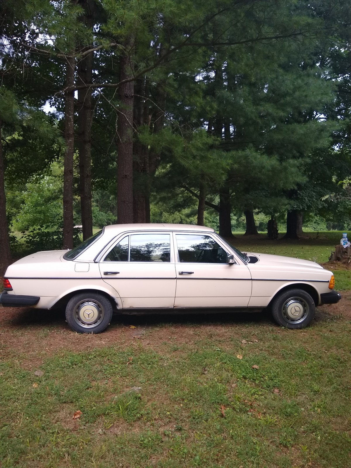 An all original 1983 240D, 4 speed manual, running beater, no rust on frame or floors (it had a leaky front seal that coated the bottom and a leaky oil pressure gauge line that coated the floor) with 400,000 miles on original engine & trans.