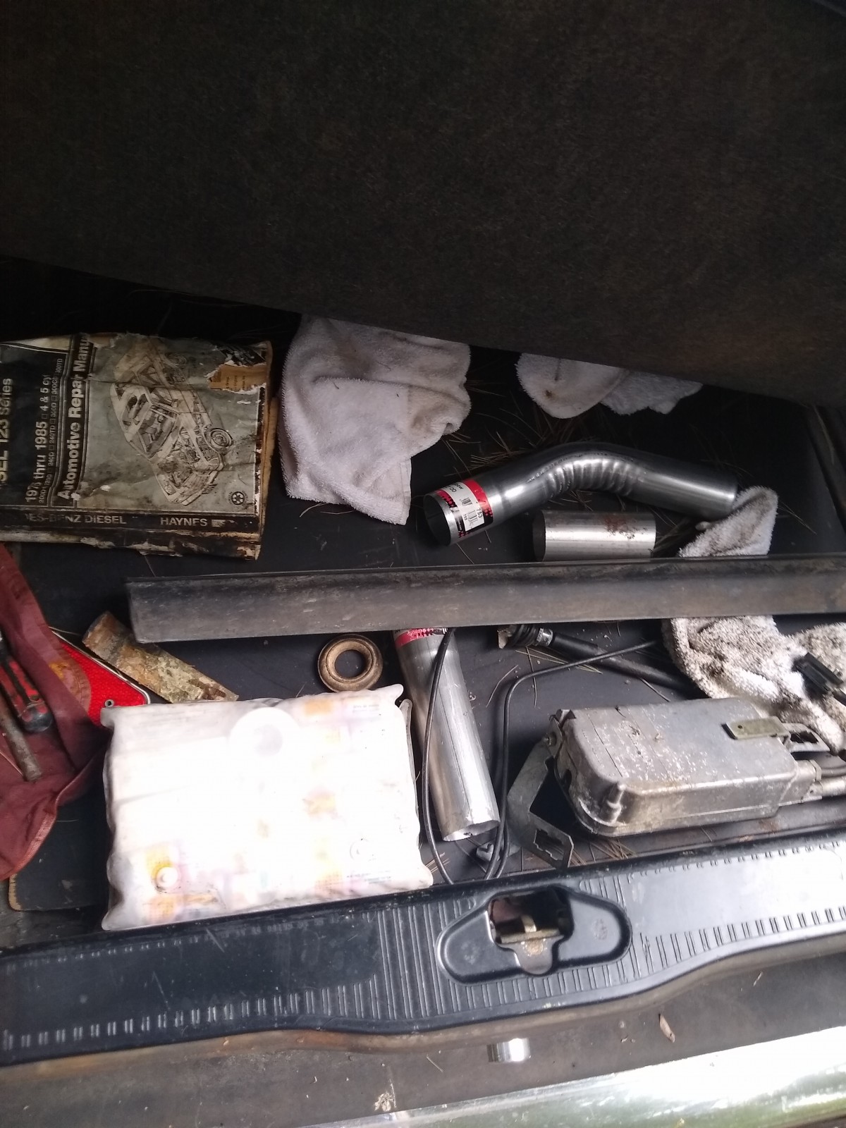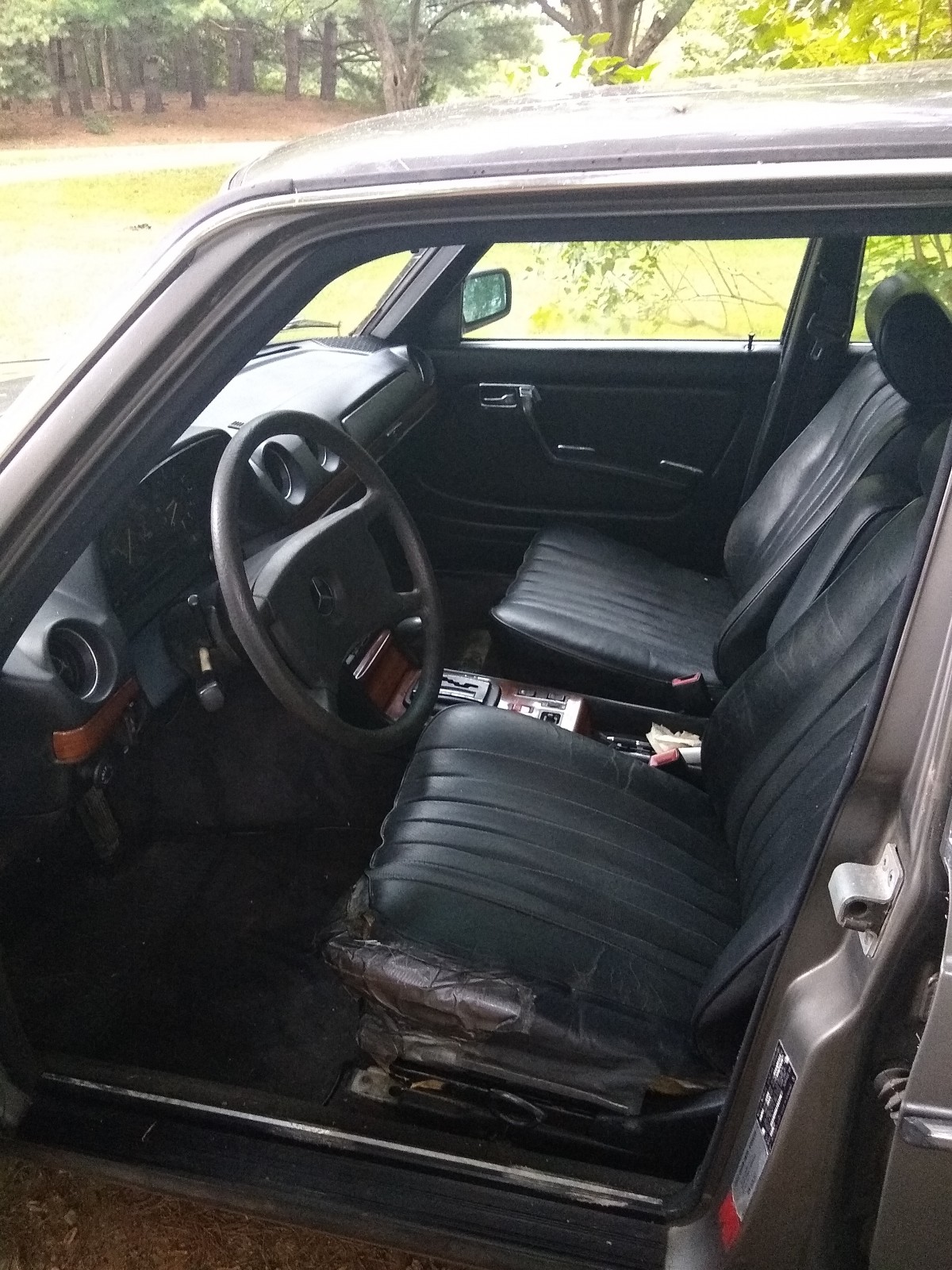 A 1983 300TD turbo (wagon) that is a rust bucket with 300,000 miles. Motor runs and transmission was rebuilt at around 200,000 miles. Cars are complete, I was going to swap the ’84 motor and interior into the 240D and have a 300D turbo with a 4-speed manual. Also was going to swap the black leather interior into the 240D, but I’m running out of time. P.S. The 240D would definitely be a contender for any Concours d’Lemons and could possibly win the 24 Hours of LeMons (it would finish the race, that’s for sure).