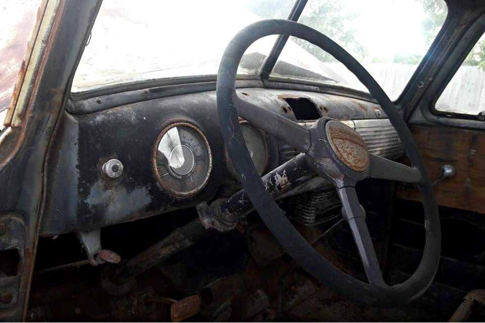 Looking over the exterior shows a rather extreme patina on the passenger side of this truck. Despite the appearance, this truck is solid with no rot to speak of. There are only a few issues to point out on this Chevrolet. One being that both front fenders have some denting below and around the headlights. Also the rear fenders are dented on the forward edge. The bed walls and tailgate are nice, but the wooden bed is rotted with a sheet of plywood covering it. All of the glass appears to be present, but the rear window is cracked. Although it is unclear when this truck was last driven, it would seem that this one could be a driver again with some parts and a few weekends. Would you revive this old short bed 3 window pickup?