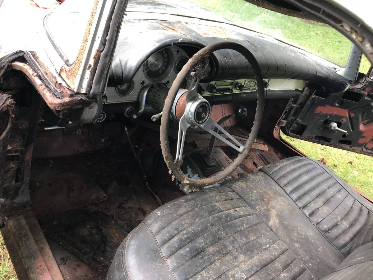 This is a sight that is almost certain to make every Ford fan quiver. According to the seller, he believes that’s a 327 Chevy hiding in there. Well, there goes the chances that this might just be a matching-numbers car. There’s no word on whether it runs or not. Nor is there any indication of what transmission is hooked to the back of that mill. Once again I’ll be the optimist: At least the hood looks to be in decent condition.
