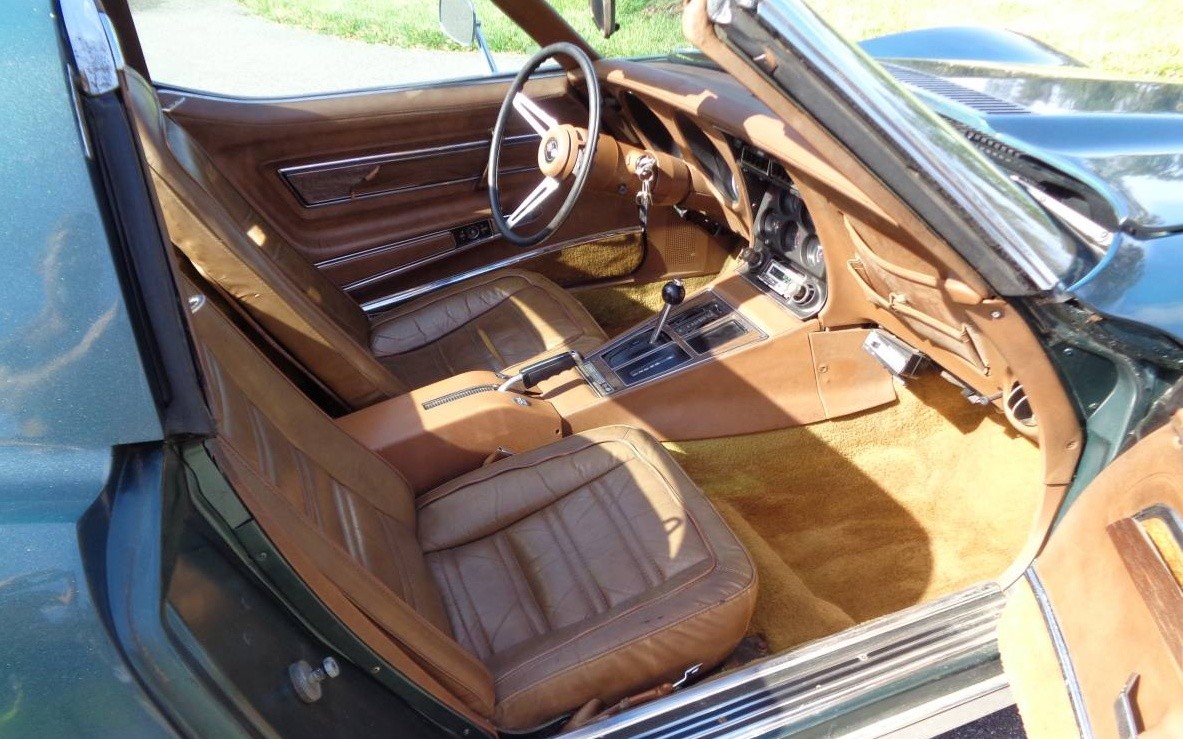 From the rear perspective, the back was pretty much a carryover from ’72 and still retained the dual chrome bumpers, but that also changed the following year when the panel got a different slope and lost the visible metal units outside altogether. 1973 was also one of the years Chevrolet didn’t keep track of how many of each Corvette left the factory by colors, with this one wearing code 945 Blue Green, not a shade I can remember spotting running around all that often. The seller doesn’t mention whether that’s the original finish outside or not, but both the paint and fiberglass seem to still be in very nice shape overall.