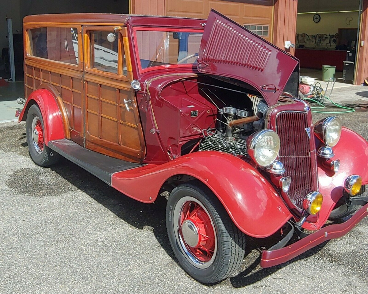 This is not an original 34 Ford woody, it is a made up car. The originals were 4-door’s and the body on this car is not original Ford. I guess if you don’t care it doesn’t matter, but for some one who knows Model 40’s, this car is just a hack job. Even at 34 K it is way over priced. If you compare it to orginal photos of 34 wagons this car isn’t even close.
