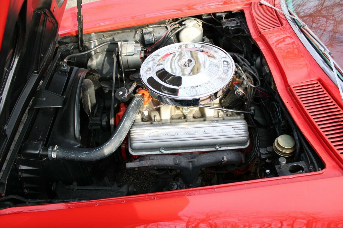 It seems that this Corvette may have led an adventurous life. Its Riverside Red paint shines nicely, although the seller notes a few cracks and imperfections, which may require attention at some point. It is also worth noting that Riverside Red is not this classic’s original paint color. The Tag indicates that it rolled off the line wearing Tuxedo Black, and it may be possible to speculate when the change occurred. The seller states that there’s evidence that the ‘Vette has been involved in an accident at some point, with the front clip and frame replaced as part of the repair process. If I were a betting man, I would be willing to wager that it was probably then that it happened because it presented a perfect opportunity. Beneath that shiny paint, the fiberglass looks pretty good. There are no significant flaws, while the seller states that the frame and birdcage are rust-free. The trim and tinted glass look excellent, as do the aluminum knock-off wheels. It isn’t clear whether these are the genuine article or reproductions, and only an in-person inspection would confirm this.