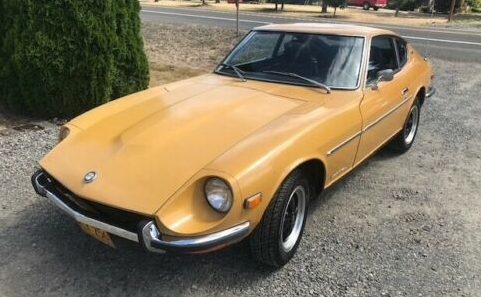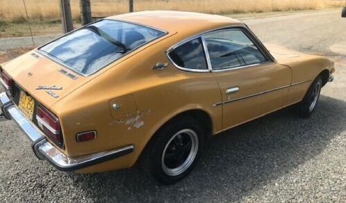 The Datsun is described as an Oregon barn find that the seller’s brother pursued for years. Despite finally owning the car and preparing for restoration, an illness has forced the premature sale. Paint is believed to be original Safari Gold that still looks mostly presentable, but the seller does acknowledge some rust is bubbling at the top of the right fender. Period-correct American Racing Libre wheels look great.