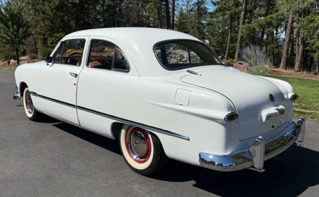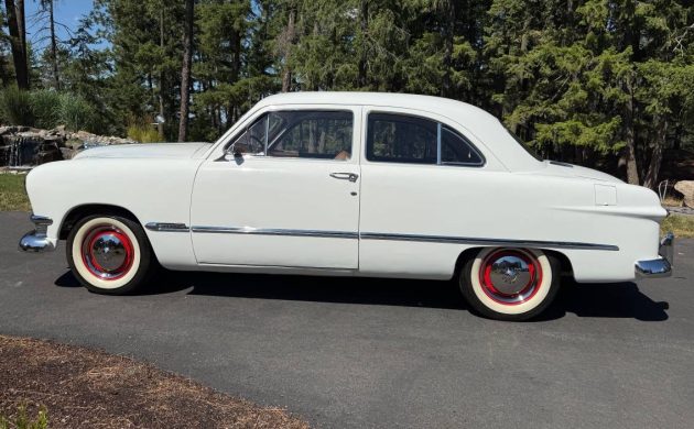 American passenger car manufacturers spent the early years following World War II producing lightly modified versions of their pre-war offerings. The initial focus was on restoring build numbers as they worked behind the scenes to develop new models. Ford hit the ground running in 1949 with a new offering that became affectionately known as the shoebox. Its styling was unlike anything that had appeared previously, and it proved an immediate hit with buyers. The company performed minor cosmetic upgrades in 1950, which is when this Custom Deluxe Tudor was produced. The seller confirms that it has seen action since undergoing a restoration years ago. That means that close inspection reveals minor cosmetic imperfections. However, the White paint shines beautifully, the panels are as straight as an arrow, and this beauty is rust-free. The trim and glass look excellent, and the Red wheels provide a striking and classy contrast.