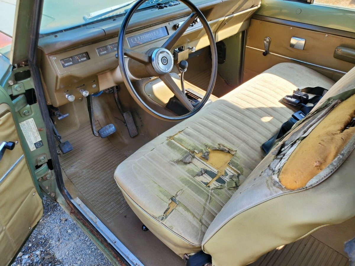 The original paint looks pretty good all things considered. The seller states that there is no Bondo or bodywork and that the Scout II has new tires on its factory chrome wheels. The Scout is equipped with the 304 cubic inch V8 engine which was rated at 196 horsepower (gross) from the factory. The brakes are said to need work and the engine smokes a little. The seller notes that there is a problem with the freeze plug so that the Scout cannot be driven for an extended period of time.