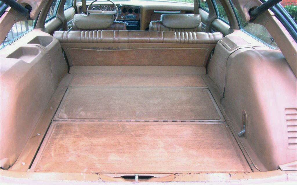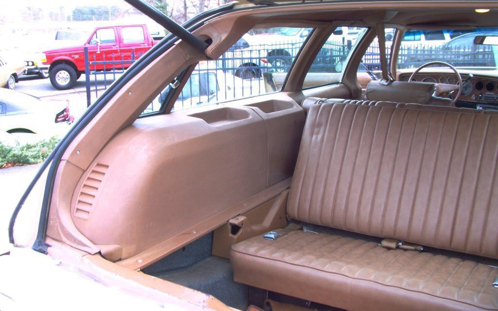As expected, this interior appears almost new, and do I see power window and power door lock switches? Nice, that has to be fairly rare for a 1970s car. The “saddle” 60/40 front seat looks perfect, as does the rear seat. This is an eight-passenger model with a foldable third seat in the rear cargo area. The cargo area also looks almost perfect. Whoever owned this car really kept it in nice condition.