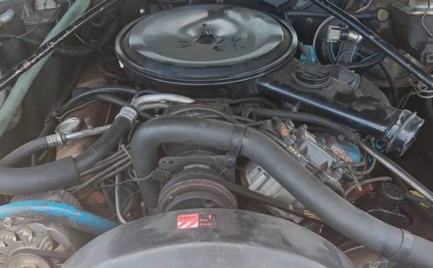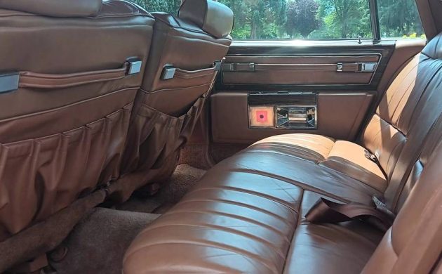 Downsizing outside also meant downsizing under the hood, sorta. Smoothly modulated power is now delivered by a 180 net HP 425 CI (7.0 liter) V8 engine connected to a three-speed Turbo-Hydramatic 400 automatic transmission (no more behemoth 500 cubic incher for DeVille). The seller doesn’t elaborate on running or driving characteristics of this 77K mile sedan, but there’s no reason to suspect an issue. Of note, a 195 net HP fuel-injected version of this engine was available too, but I don’t believe that I’ve ever encountered one.