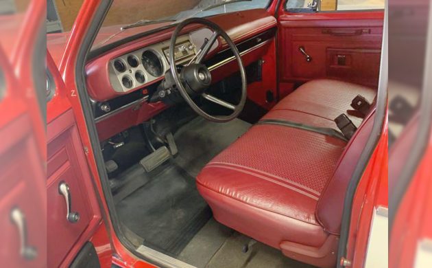 I’m assuming this interior is original, and they don’t mention it in the listing, but they do say that three of the four tires are original! Yeah, those have to be changed ASAP. 46-year-old tires aren’t even remotely safe to drive on. That being said, I have to believe this seat and everything else inside is also original if 3/4 of the tires are original. Four interior colors were available on the Custom trim trucks: black, cashmere, blue, and red, as seen here, and this appears to be an original pattern, so I’m betting this is the seat it left the factory with. Amazing! There isn’t even a tiny crack on the side of the vinyl. The Club Cab gave a nice area behind the seats for additional seating or storage. It’s my personal favorite cab configuration. It’s no surprise at all that this one looks like new back there.
