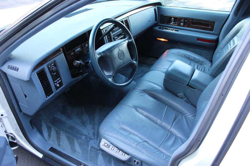 I don’t know about you guys, but I can smell the interior here from. The seller claims it still has the “new car smell” and I believe him! Nothing beats a power leather heated bench seat in a Cadillac, at least for me. Scoff all you want, but if this car sells for under $10,000 its a steal! While the mileage is extremely low for the year, the cosmetic condition of this car suggests to me that not only did it see little use, it also had a meticulous owner. You can barely tell the seat has been sat in, and I’m a sucker for “90s blue” interiors. There are a LOT of pictures in the ad, and the seller has photographed nearly everything: it is all immaculate.