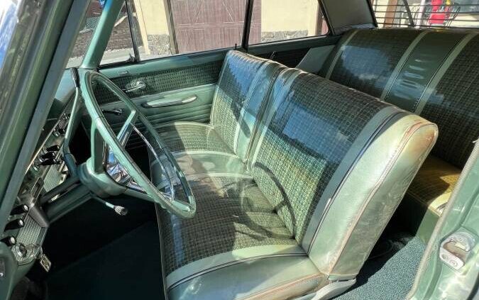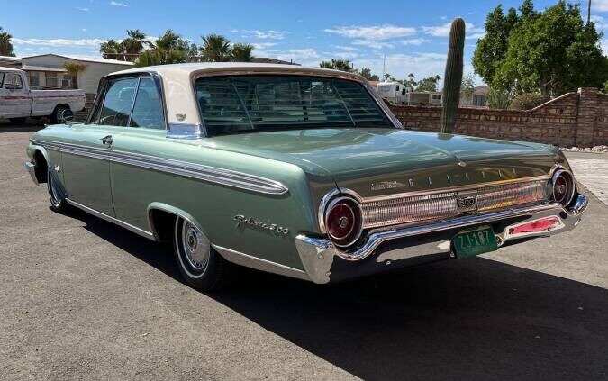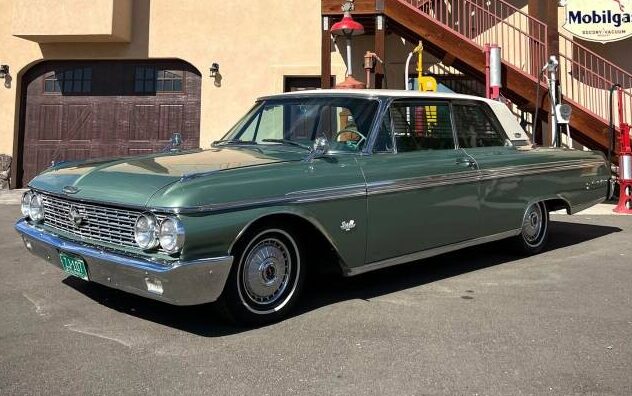 Site won’t take my tweet but you will do!LOL. My dad bought a new 62′ two door H.T. and traded in our 57′ two door Fairlane 500 in on it. Powder Blue— blue interior.i tried talking him to the XL with no success.The plastic on the seats was not a option along with the blinds in the back. The left mirror is not factory correct and the color green I had never seen b/4. The hubcaps look pristine and why change its petigree with different tires/wheels???