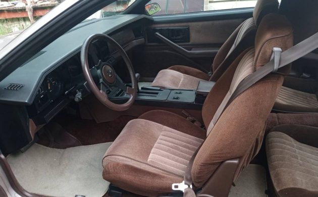 This was a very popular color for GM in the 80’s. At least to me it seemed every other Olds Eighty Eight or Ninety Eight was this color. But I don’t remember seeing many Camaros or Firebirds this color. This was another color that seemed to fade kind of quickly. I love the interior on this one. Personally, I’d keep it stock , go for a high quality repaint in this original color and enjoy it.