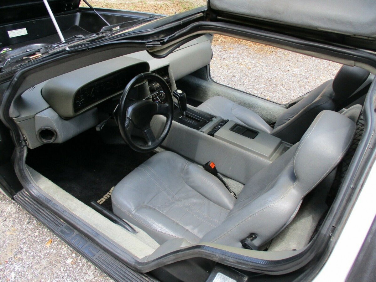 The general condition of the DeLorean seems to reflect the low claimed mileage. The overall condition of the interior is quite good, with a minor mark on the center console, and some stretching of the leather on the driver’s seat being the only signs of wear. As befits a car of this type and price, the DMC-12 came fully loaded with luxury appointments. Air conditioning, power windows, power locks, an AM/FM radio/cassette player, power mirrors, and a wheel that was adjustable for both tilt and reach were all standard features.