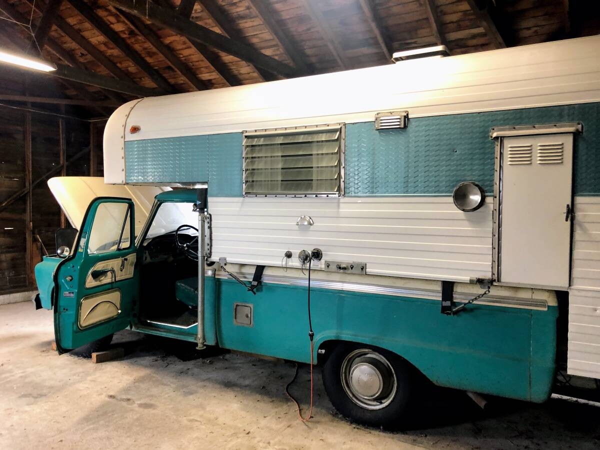 There are very few people looking for a vintage tuck and camper combo to actually use for it’s intended purpose. Especially one with only a half-bath, no A/C in either the cab or the camper, and manual transmission. This would be a nice set to exhibit at car shows, but one has to have a tall inside storage location, as it won’t do well in most outside storage situations. For these reasons, I think this is overpriced, and a more realistic value would be about 50% less.