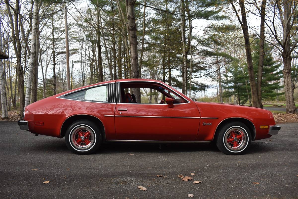 I’ve got a ’76 Sunbird in pretty much the same color scheme (though mine is a bit darker of a red). And mine is the “notchback” with a trunk, not the hatchback.