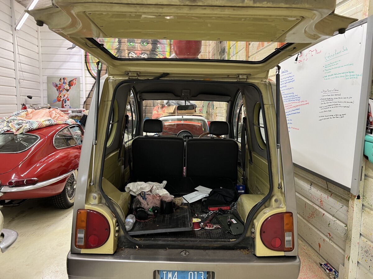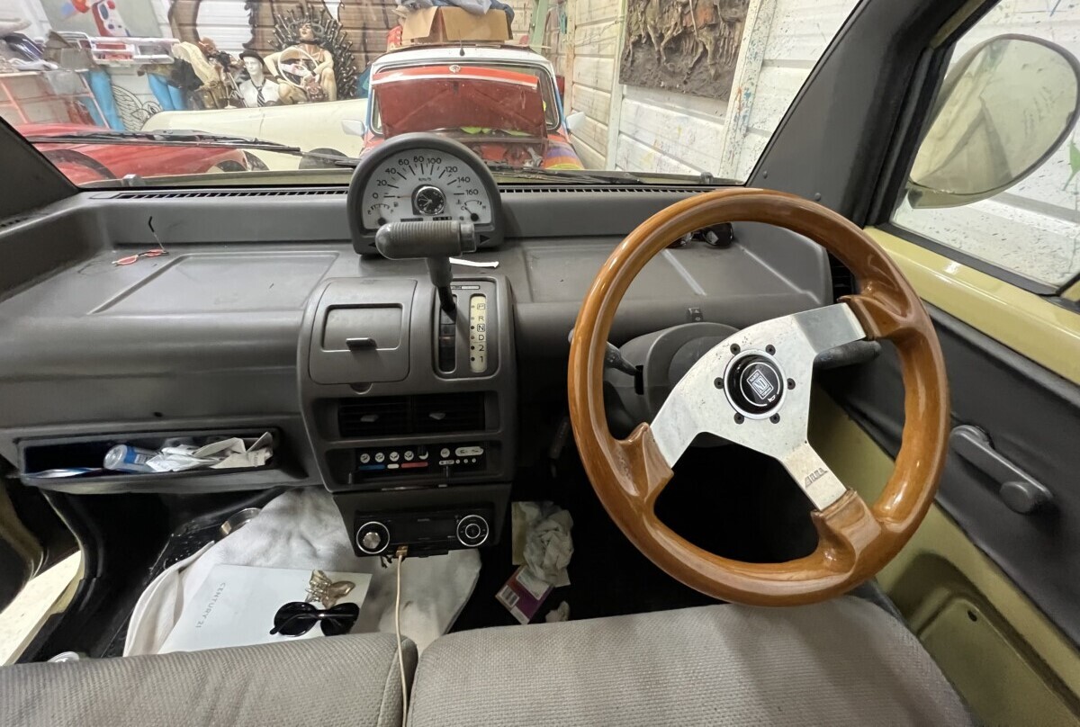 The S-Cargo was built on the Sentra/Sunny platform while the Figaro was built on the Mircra platform. You are correct that the name is a nod to the 2CV delivery vans which they borrowed styling cues from. The owner replaced the original steering wheel which was like the Citroen version with one large spoke. The replacement he used is not very good compared to the original. His asking price is optimistic. You’d think he’d at least clean all the garbage out of the car for the photos.
