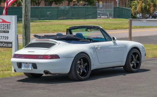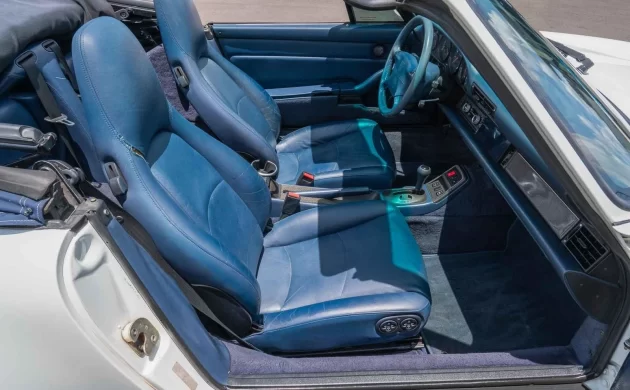 The full leather interior in what looks like Metropol Blue is a desirable upgrade that was likely custom-ordered by the first owner. This is a key detail for many 911 purists who value special colors and options, so you may see some bidders ignore the Tiptronic gearbox due to the interior scheme. If this car were sitting on the Turbo-style “twist” wheels with this color combo, interest would increase dramatically. The problem with the aftermarket wheels in this case is there’s an association made of someone buying the cheapest 911 they can find (an automatic convertible) and installing undesirable mods. If the reserve is reasonable on this car, someone could spend a weekend updating it and likely sell for a better price in short order.