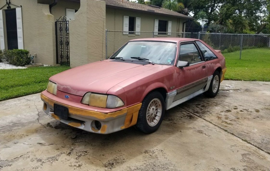 What’s better: a completely stock car clearly left to the elements, or a modified car that’s been kept under a cover in enclosed storage? That’s the question in front of you when considering this 1990 Ford Mustang GT. Sure, it’s hard to find a cheap Fox Body that hasn’t been “enhanced” with numerous aftermarket modifications, but are the cosmetic needs too great on this Florida barn find? Check it out here on eBay where bidding is over $2,700 with no reserve.