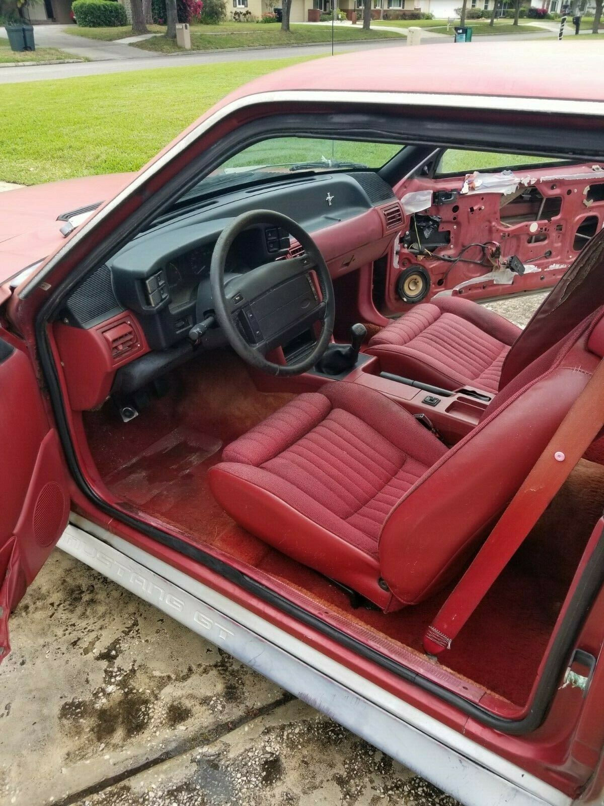 This should be an easy project. These are very simple to work on and EVERYTHING is available from multiple vendors. That door panel will be an easy find as those red interiors were hated by the mid 90’s and everyone with them was converting it to black or gray. Thus used red interior parts are the cheapest for fox mustangs. Whoever buys this will be spending a lot of time on LMR.com fo sho