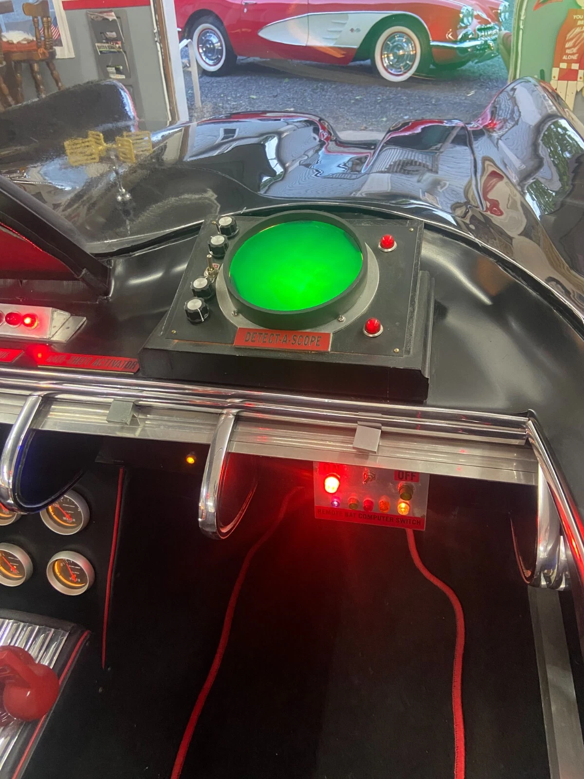 This Batmobile’s interior presents exceptionally well, with no evidence of wear or damage. It continues the Black and Red theme of the exterior, creating an impact that is hard to ignore. It isn’t completely faithful to the TV vehicle, with changes to the dash, gauges, and wheel. However, these would probably be more to allow the car to comply with the law than a lack of attention by its creator. Otherwise, the buyer still receives many of the gadgets that were a hallmark of the original, including the Batphone, lights, compass, and the Detect-A-Scope.