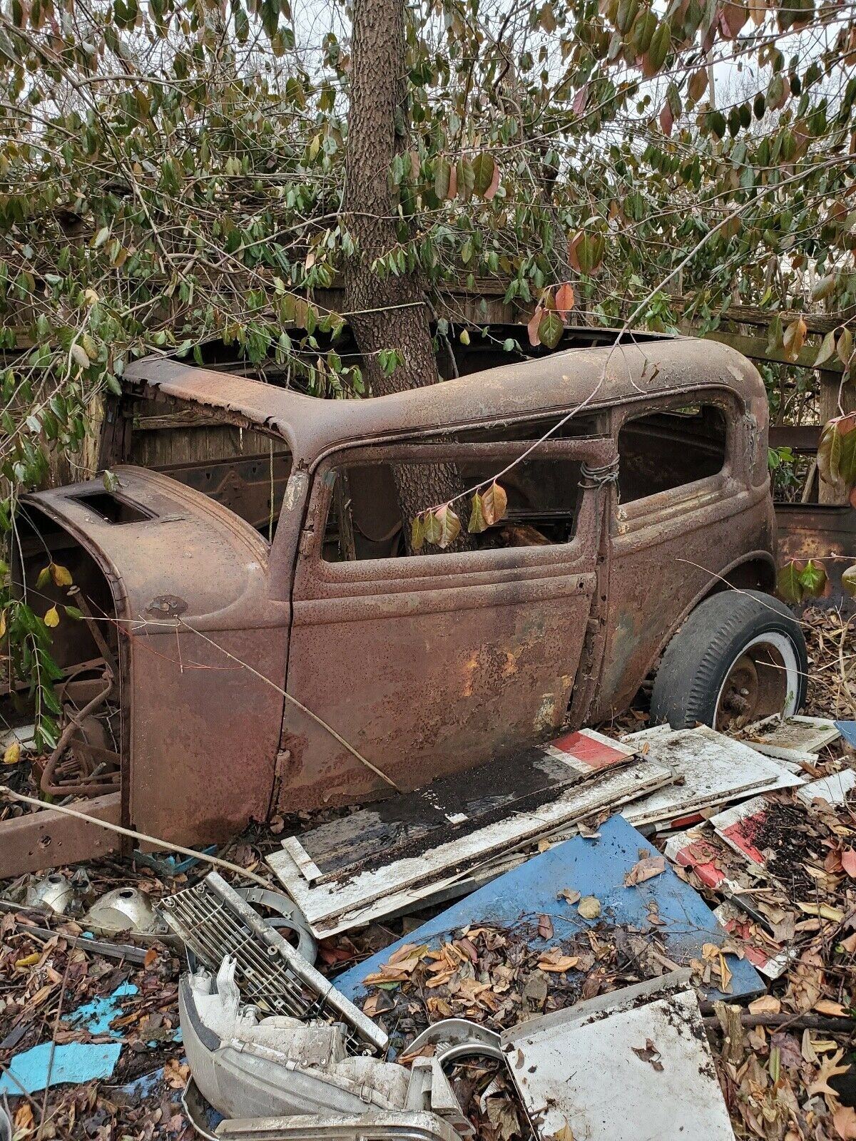 After reading the negative posts about getting the tree out of the deuce Vik, I was only 16 when me and my school buds walked 2 miles way the heck out in the middle of nowhere to find 36 Dodge coupe. We found it and it had a huge tree growing thru the middle of the engine bay. Went home and got Dad’s Stihl and we cut that tree outta there and drug that car back to my friend’s house. It can be done if you want it bad enuff. Like the links we’ve given to people on here so that can see that 32-3 and how it was worse than this and turned into a nice car when done. People told us that we could not retrieve that old Dodge but we did. For some reason, normal people refuse to see the potential of what is possible.
