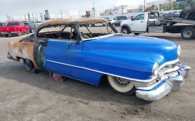The DeVille debuted in 1949 as a top trim package on the Series 62 Cadillacs. That included the Coupe DeVille, which was one of the first pillarless 2-door hardtops. These cars became a series of their own later in the 1950s and would be a Cadillac mainstay until 2005. The future seller (an auction house) has what appears to be a customized 1950 Coupe DeVille that caught fire and burned up, thus becoming a salvage purchase at best. Located in Los Angeles, California, this yet-to-be-scheduled auction Caddy may be available soon here on IAA Holdings, a global digital marketplace. Kudos to Mitchell G. for the “hot” tip!