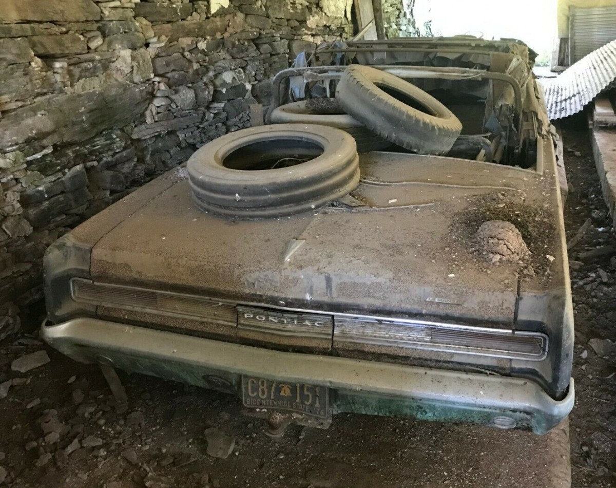 As we piece the story together from the seller, apparently both the LeMans and Tempest found their way into a rather shabby barn about 30 years ago. The LeMans was towed in, while the Tempest was driven in. Fast forward from 1990 to now and the convertible is a mess. We don’t see much of the Tempest, but it can’t have fared much better.