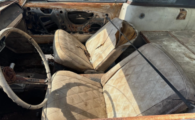 While the seller says this Ford has the normal amount of common rust, I’d say it goes deeper than that. The photos provided portray a vast amount of crusty material on the unibody undersides. We’re told the Mustang is “pretty much” complete, but you’re going to have to make a list of stuff to replace anyway. The interior is quite rough, but it looks like this pony was ordered with the deluxe upholstery.
