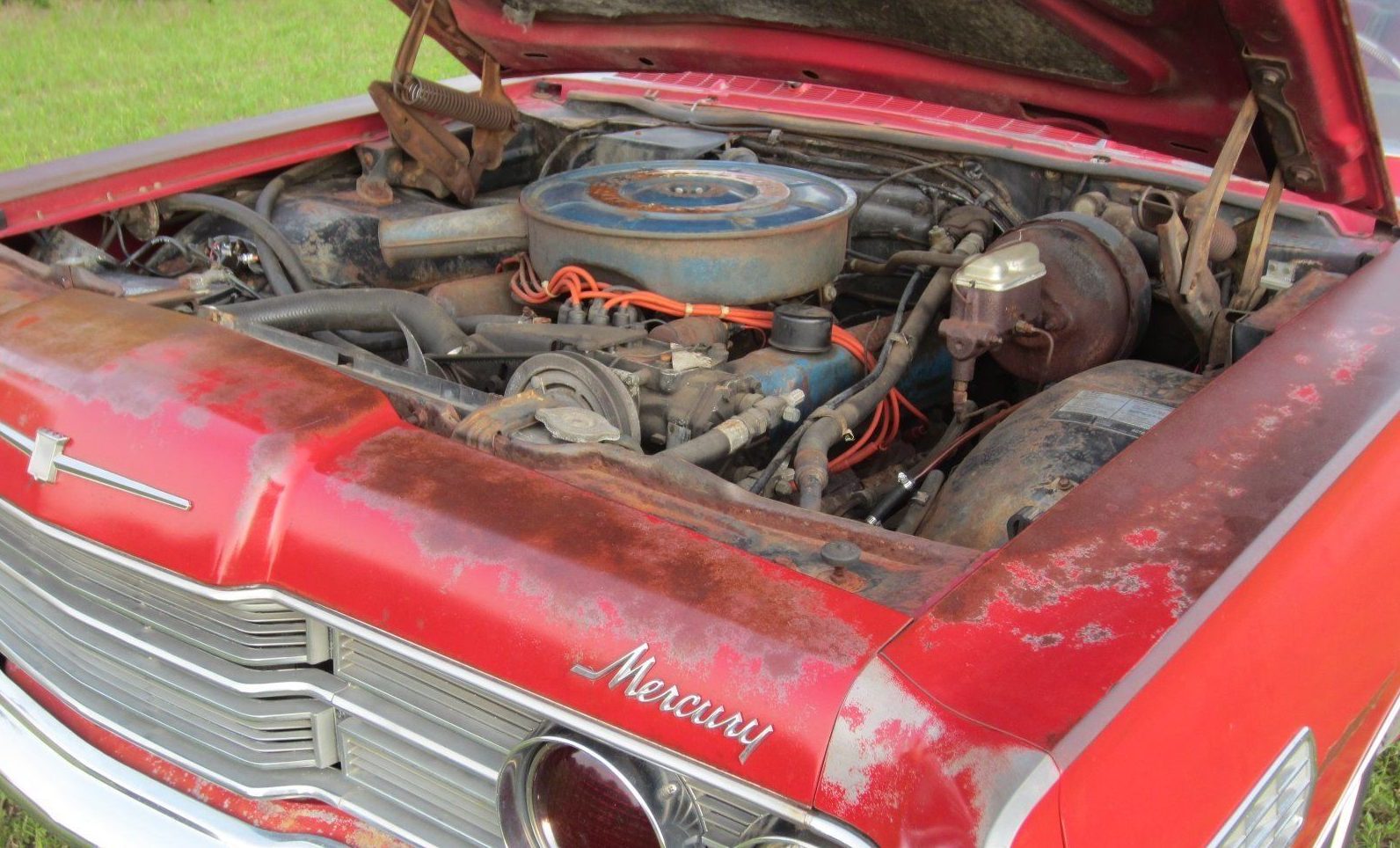 There’s a 410 V8 in there somewhere. It’s messy under the hood, but it looks like it’s all there. If the AC works, you’ll be ready to drive.