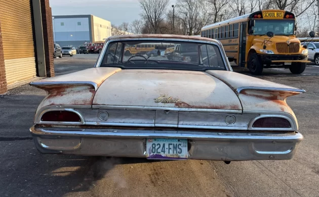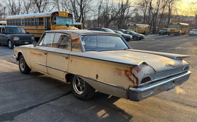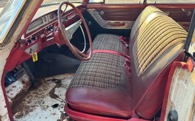 Ford managed a number two finish in the great domestic automobile production race in ’60 with 1,439,000 automobiles. Ford full-sizers ran with three models in ’60, Galaxie on top, Fairlane 500 in the middle, and the standard Fairlane bringing up the markers. Galaxie body styles included four-door sedans, hardtops, and station wagons, as well as a two-door sedan, a hardtop (the Starliner), and a convertible known as the Sunliner. Four-door hardtops were all the rage by ’60, having been introduced a few years earlier, and Ford moved about 39K Victoria hardtops that year. It’s a body style I miss; it’s not only the styling, but also the open, breezy feel and the unobstructed visibility that are such positives with this design. Unfortunately, the Fed. meanies at the NHTSA put the kabash on this body style in the mid-seventies – concerns about rollover protection. This car’s exterior is complete and appears to be straight, and the seller adds, “NICE AND STRAIGHT BODY WITH GOOD PANEL FIT AND DOOR GAPS,” but it has that typical New Jersey rust streaming thing going on. This Vicky, however, is wearing an Arizona tag, so maybe what we see here is the result of an unyielding sun blast out west. Overall, the exterior is not bad, mind you, it doesn’t look like a Liberian tanker, but its overall vibe invites one to dig deeper looking for more serious rot. Included in the listing are two images of the underside, though there is nothing obvious from a structural perspective. The five-spoke alloy wheels are a nice touch, but it’s a bit like putting lipstick on a pig.