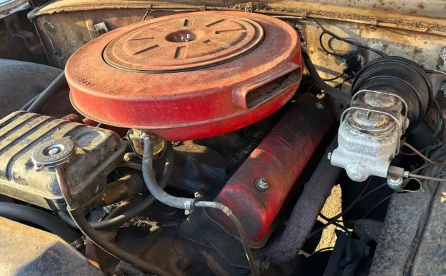 A Y-block is on duty under the hood, in this case, in the form of a 185 gross HP, 292 CI V8 engine coupled up to a Cruise-O-Matic automatic transmission. The mileage recording is 128K miles, and the seller states, “IT RUNS AND DRIVES WITH A NEW GAS-TANK, WHEELS AND TIRES, AND STOPS WITH POWER BRAKES.” Note the dual circuit master cylinder, a recent swap perhaps?