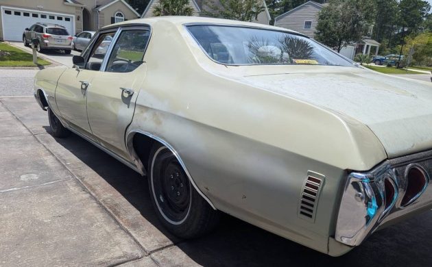 Many Chevelles were purchased for family use. In 1972, 48,575 Malibu sedans rolled off the assembly line with four doors. And 92% of those had a V8 under the hood, either a 307 or 350 cubic-inch engine. This Chevy has the latter, but the seller’s wording leaves some uncertainty if this 350 was mated to this Chevelle in ’72. If the odometer is correct at 71,000 miles, this Malibu may have only been driven to church and the grocery store for part of its years.